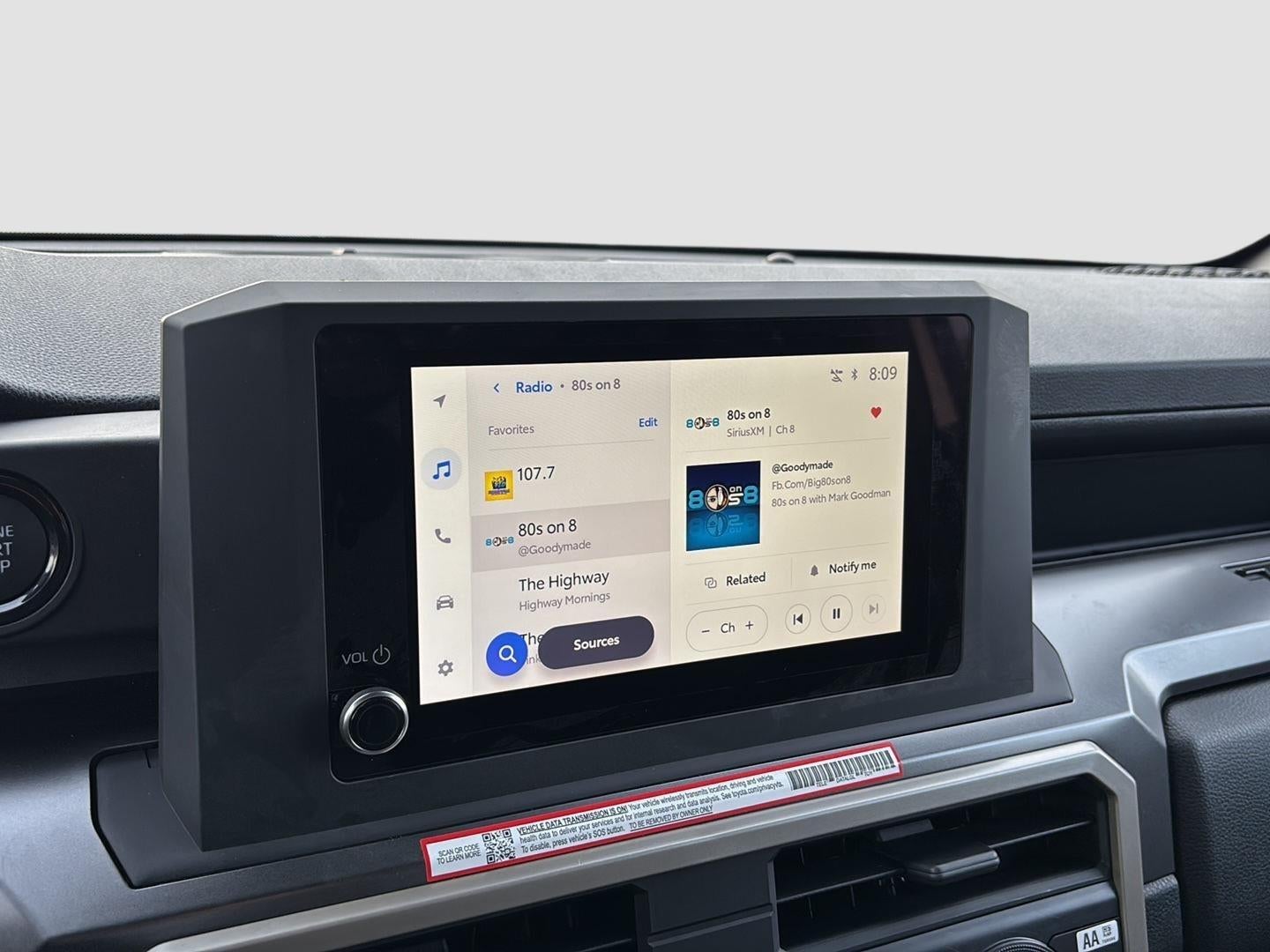 - 8-in. Toyota Audio Multimedia display with 6-speaker audio system, wireless Apple CarPlay® [carplay_wireless] & Android Auto™ [android_auto_wireless] compatibility, SiriusXM® 3-month trial. [siriusxm] See toyota.com/connected-services for details.