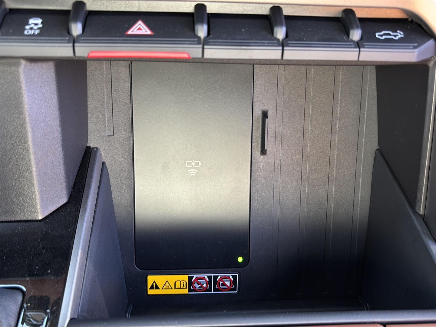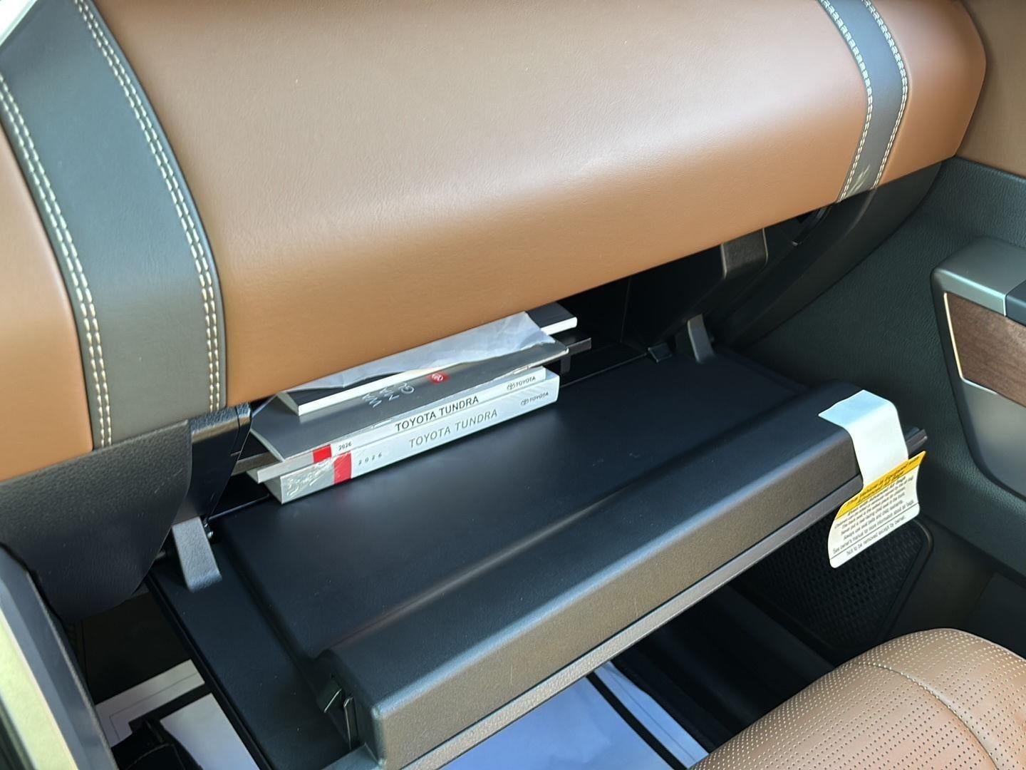 - Illuminated center console storage bin and glove box