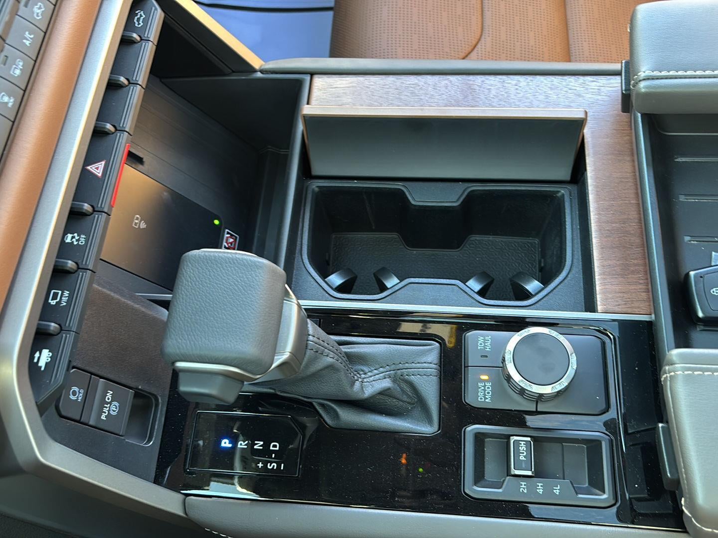 - Leather-wrapped shift knob