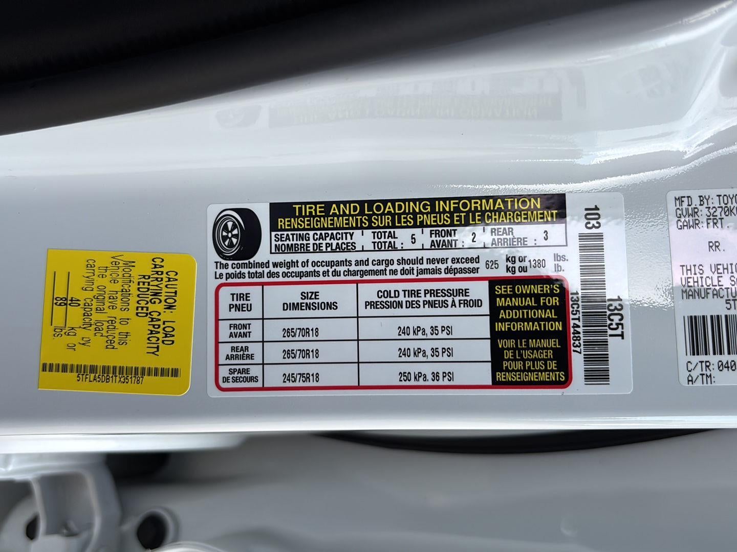 - Front Tire Size: P265/70TR18